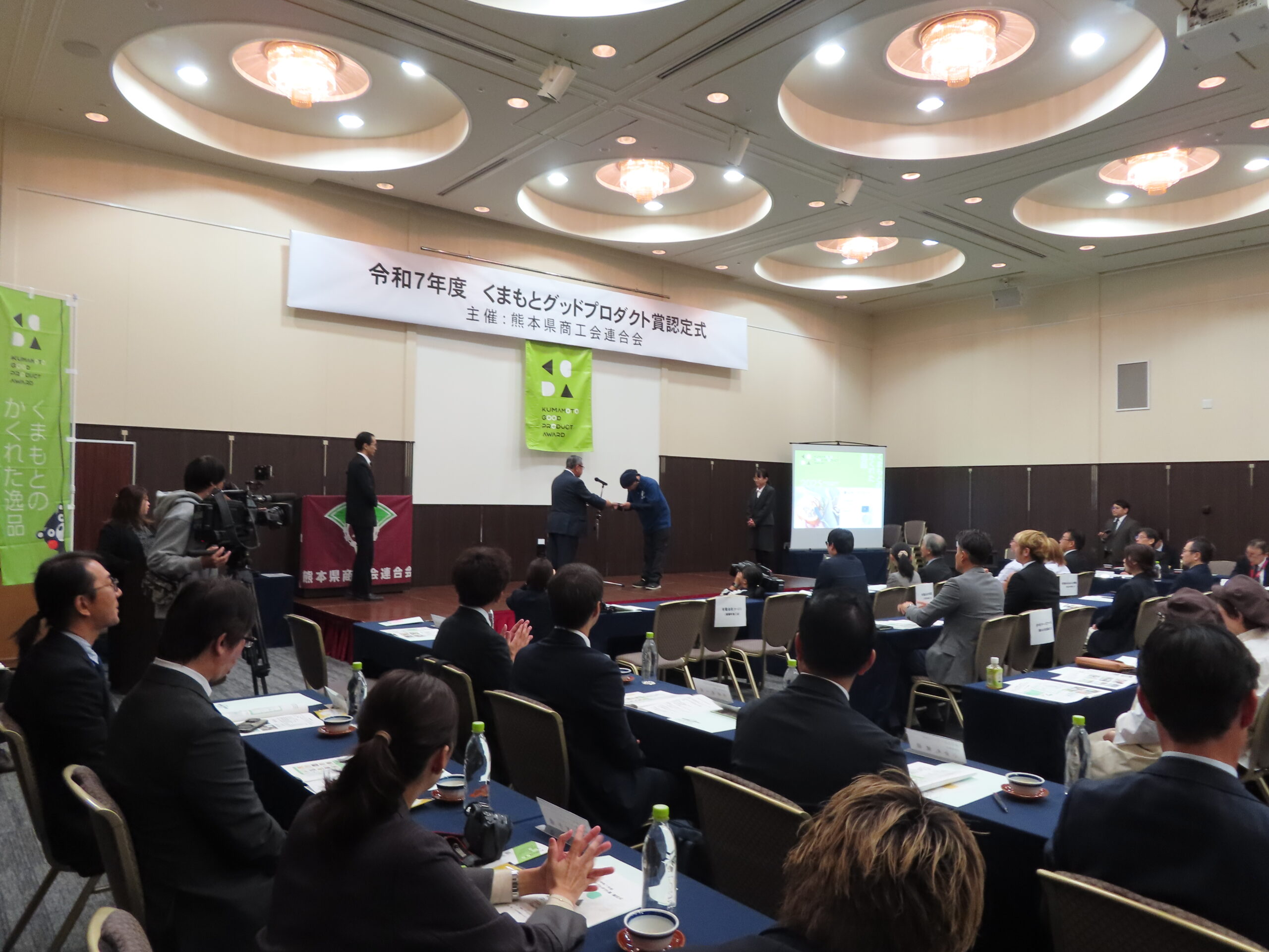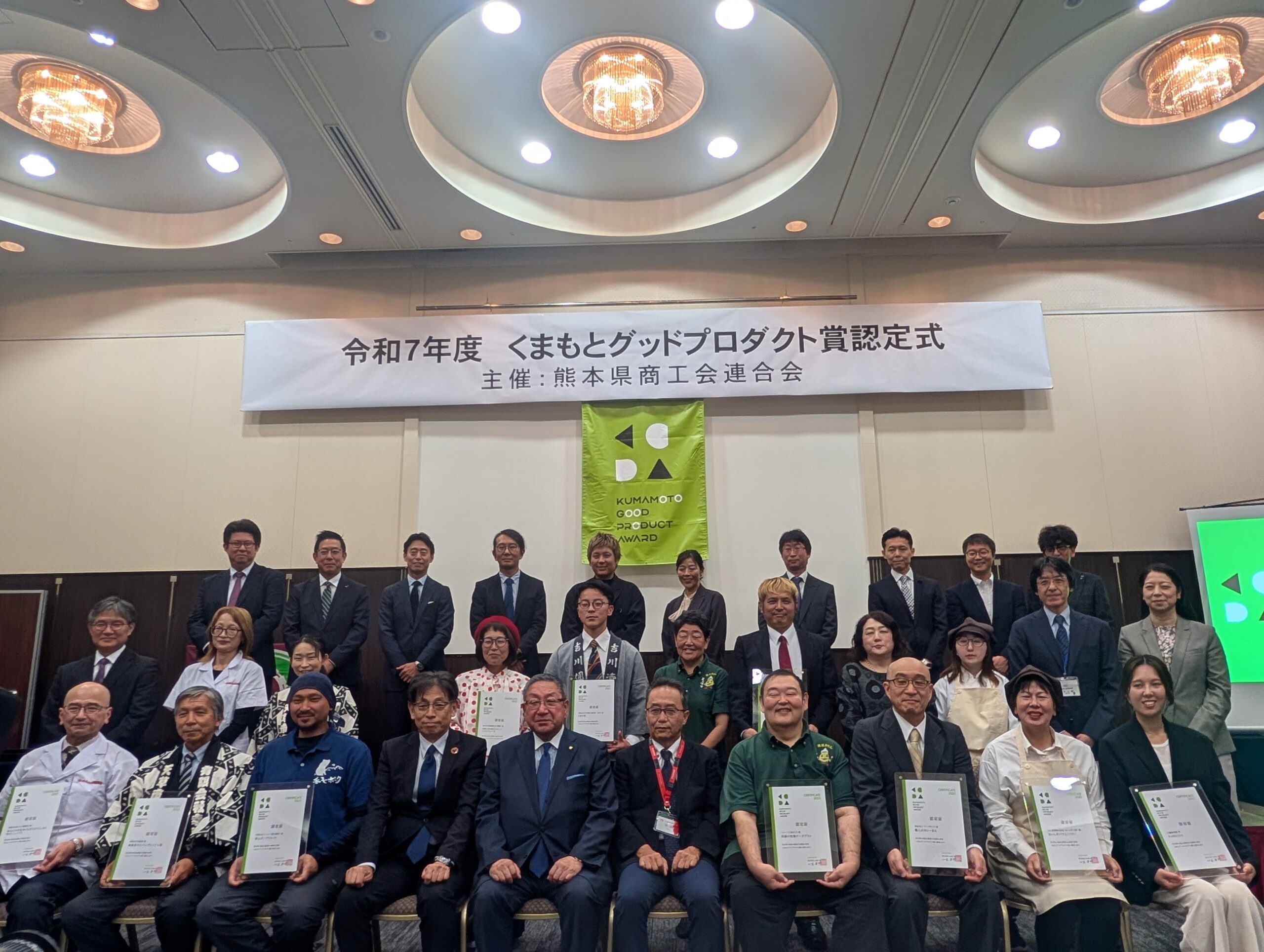 令和7年10月28日(火)にホテル熊本テルサにて、「くまもとグッドプロダクト賞2025」受賞商品の認定式を行いました。