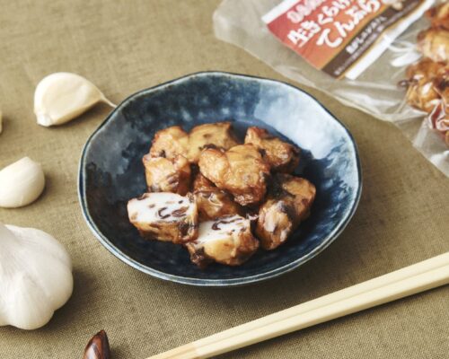 人吉球磨特産の生きくらげをふんだんに使い、焦がしニンニクでパンチを効かせた新しい味をご堪能ください。