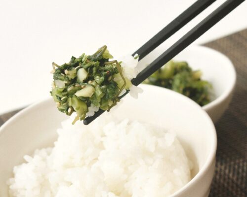 刻んだ高菜に、香ばしい胡麻と昆布の旨みを掛け合わせました。皆様の「うまか菜ぁ~」を引き出します。